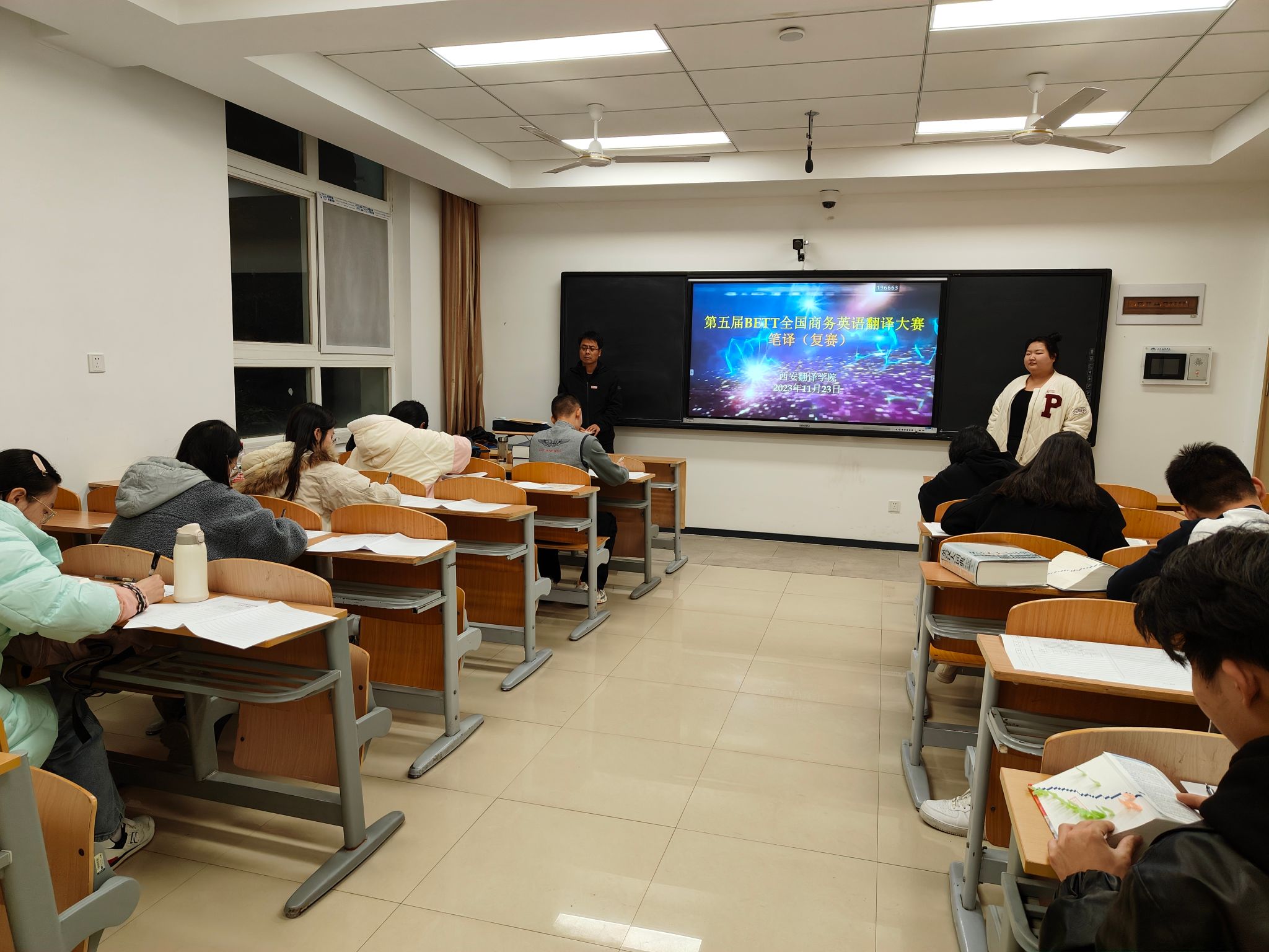 2023年11月23日,由西安翻译学院举办,英文学院承办的第五届BETT全国商务英语翻译大赛(复赛)成功落下帷幕。此次翻译大赛分为口译和笔译两段赛程。口译赛于11月23日下午2:00~3:00在多媒体语言实验室15进行。笔译赛于下午17:00~20:00在1号楼三层1322教室进行。来自学校不同专业50多名选手分别进行了相应比赛,并在笔译复赛前举行了口、笔译初赛的颁奖仪式。