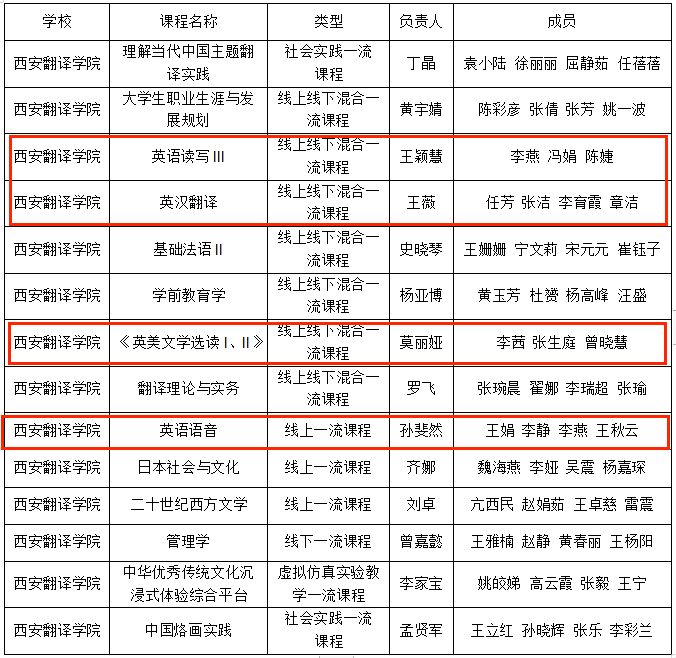 近日,陕西省教育厅发布了《陕西省教育厅关于公布第三批省级一流本科课程认定结果的通知》(陕教函〔2024〕243号),我院申报的《英美文学选读I、II》《英汉翻译》《英语语音》《英语读写III》4门课程获批省级一流课程。另有《英美文学选读I、II》《英语语音》2门课程被省教育厅推荐参加国家级课程申报。截至目前,英文学院共获批10门省级一流本科课程。