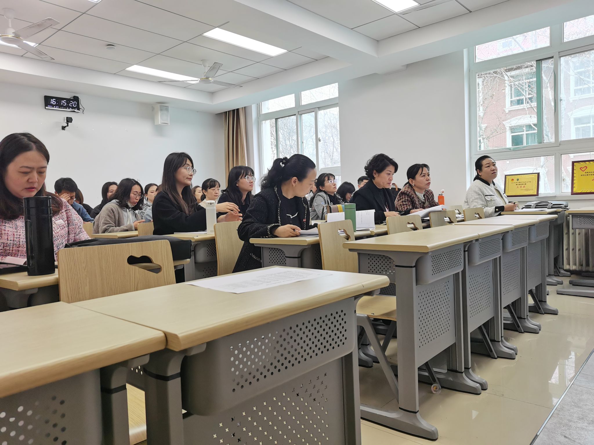 为深入贯彻落实习近平总书记关于教育的重要论述,推动信息技术与教育教学融合创新发展,不断激发课堂教学活力,不断掀起教学改革热潮,3月27日下午,英文学院在西区1号楼1216教室举行第四届“教师教学大赛”复赛,选拔优秀教师参加校级决赛。英文学院教学副院长李燕、商务英语系主任杨妍、英语系副主任杨冰及公共英语教学中心主任张娟担任评委,来自各系选拔的8位教师参赛,各系教师代表现场观摩。