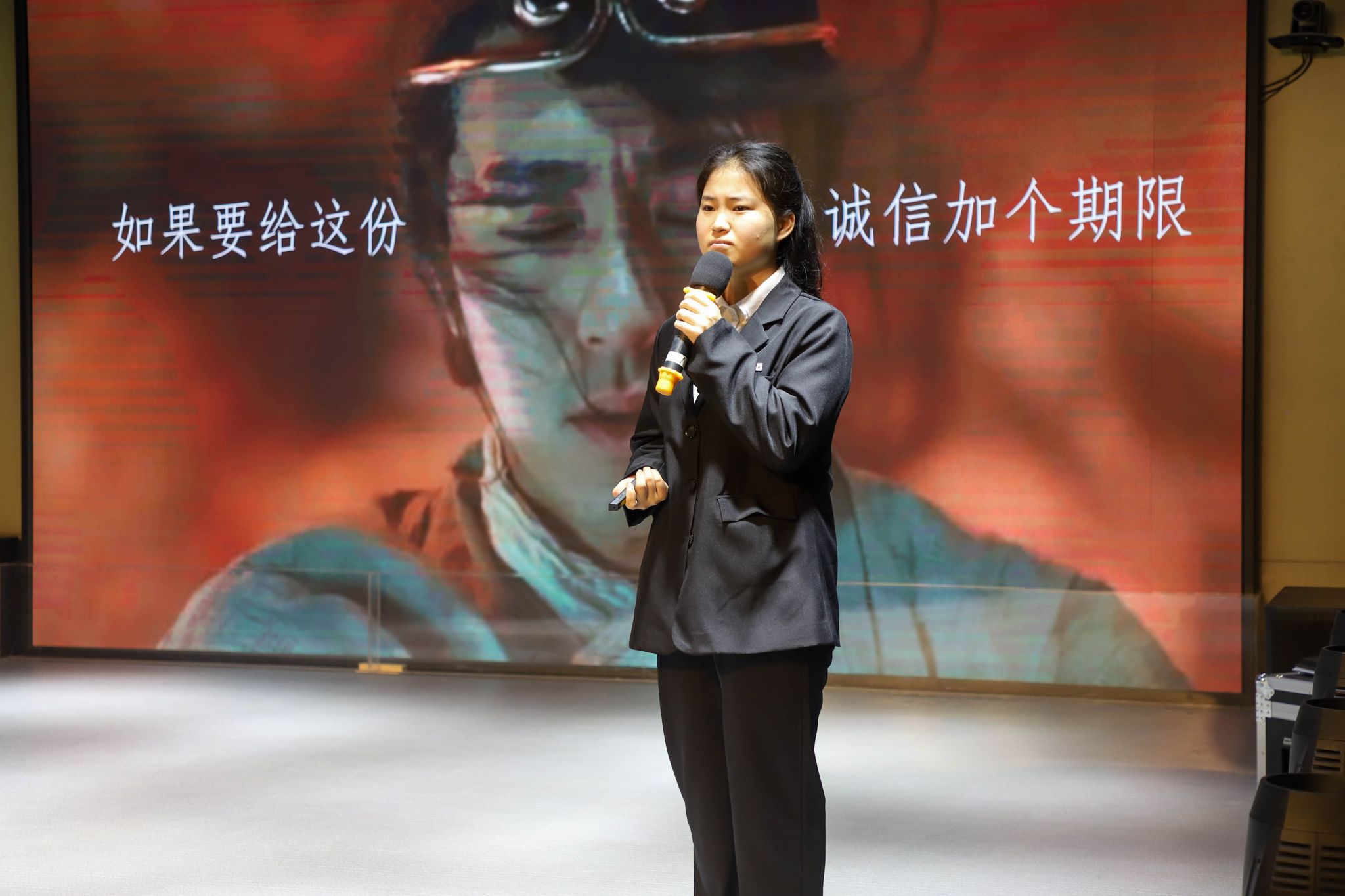 本次比赛在富有青春活力的开场舞《Fallin out》中拉开帷幕。经过前期激烈角逐,共有十名同学入围决赛。本次比赛从主题内容、语言表达、整体印象、才艺展示、演讲时间五方面进行评比。一号选手岳欣带来《做一个播种诚信的人》,选手精神饱满、大方自信,演讲内容紧扣主题,她以身边同学朴实无华的小事为例,向在场观众讲述了她对诚信教育的看法,阐述了诚信教育在我校校园文化建设、学生综合素质等方面的作用,彰显了我校开展诚信教育的成果。最后,她用一首悦耳动听的歌曲《征程》结束了演讲,其稳定的台风获得了评委老师一致好评。六号选手周巧雨带来《诚立天下,信赢未来》,她以“守信用、重承诺”为出发点,呼吁大家坚守信仰、树立信誉、言行一致。她侃侃而谈、掷地有声,通过引经据典,追溯中华五千年文化,将中国礼仪之邦的形象体现得淋漓尽致,周巧雨所流露出的真情实感引起全场的共鸣。七号选手段俊毅带来的《君之诚 君则赢 君则立》,他紧紧围绕“以诚待人,以信立身”主题,将对国家资助政策的感恩之情融入演讲当中,声情并茂地展现了新时代青年学生热爱祖国、知恩感恩、诚信拼搏、积极上进的良好精神风貌。