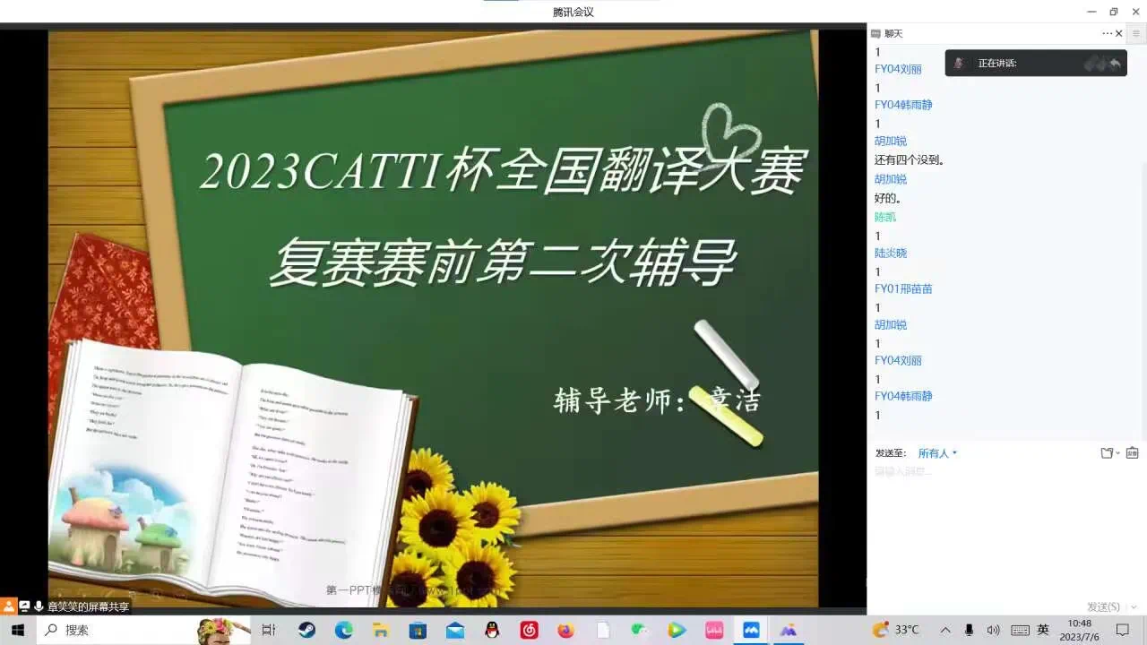 大赛指导教师李鲜花、魏征、王薇、王小娟、章洁老师利用假期及课余时间,为参赛学生进行线上辅导,线下一对一精细化指导,全称跟进赛事,辅导学生查漏补缺,反复进行模拟训练,通过线上培训、线下练习修订的方法,为学生提出了建设性意见及翻译技巧,大幅提高了学生的翻译实战能力。