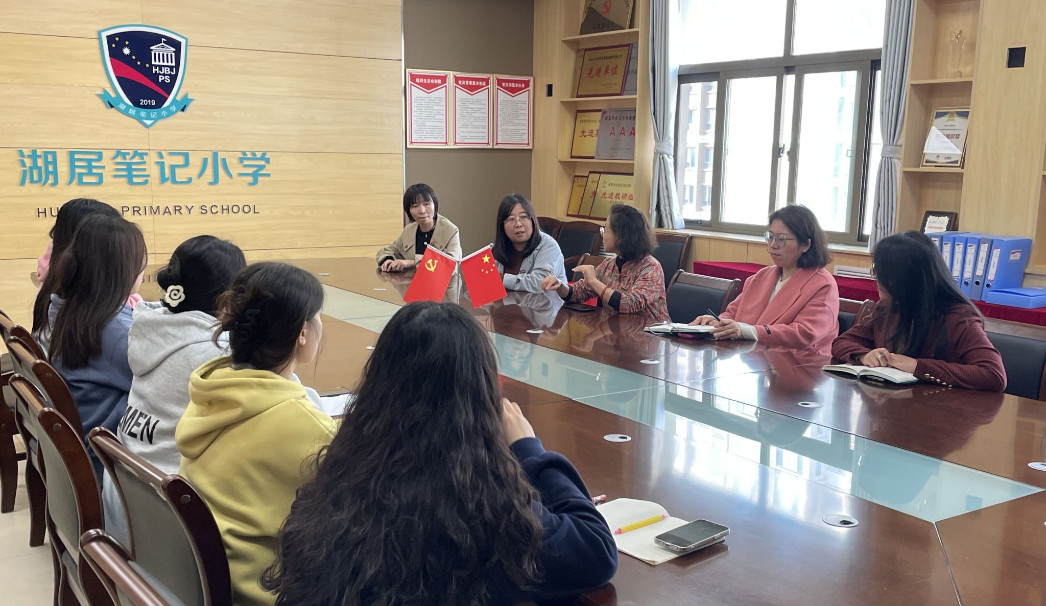 10月27日下午,英文学院副院长李鲜花老师,实习负责人赵玲副主任和带队老师朱广珍来到西安长安湖居笔记小学对实习生们的工作进行了考察并和湖居笔记小学的张丽娜主任与张文静老师进行了会谈,大家一致希望让学生们拥有长期的、稳定的实习实习环境,体验备课、上课、组织学生活动的真实状况,让实习生们都有机会走进课堂。