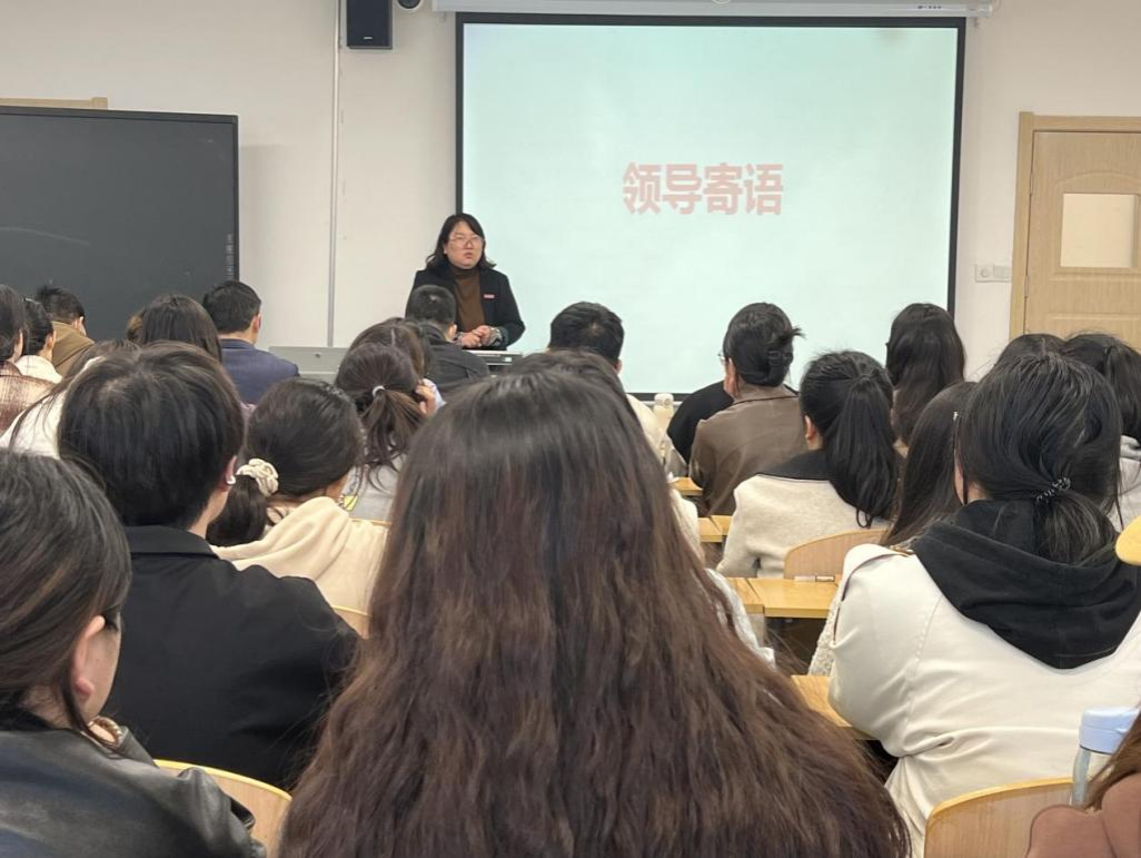紧接着,王珍书记发表了热情洋溢的致辞。她首先对即将踏上实习岗位的同学们表示了热烈的祝贺,并希望大家能够在实习中不断成长,提升自己的专业素养。王书记还强调了学院对实习工作的重视,表示学院将全力支持同学们的实习工作,为大家提供必要的帮助和指导。