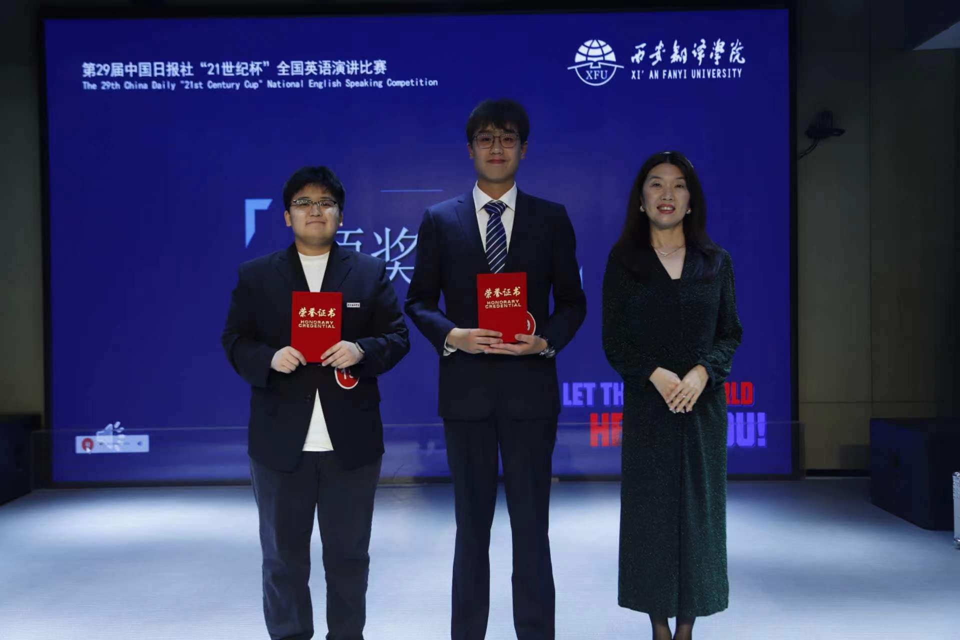 2024年4月23日下午,由教务处举办、英文学院协办的第29届中国日报社“21世纪杯”全国英语演讲比赛西安翻译学院校园赛在西区体验中心顺利举行,经过三个小时激励角逐,选手们大方异彩,比赛圆满落幕。