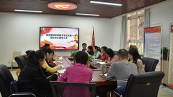 11月11日16时整,西安翻译学院英文学院党委中心组学习会议在一号楼二楼党员活动室召开。会议主题为加强和改进新时代师德师风建设,各分党委委员、全体院领导、各系主任、综办各主任、数字语言中心主任、教师支部书记参会学习,会议由党委书记樊磊主持。