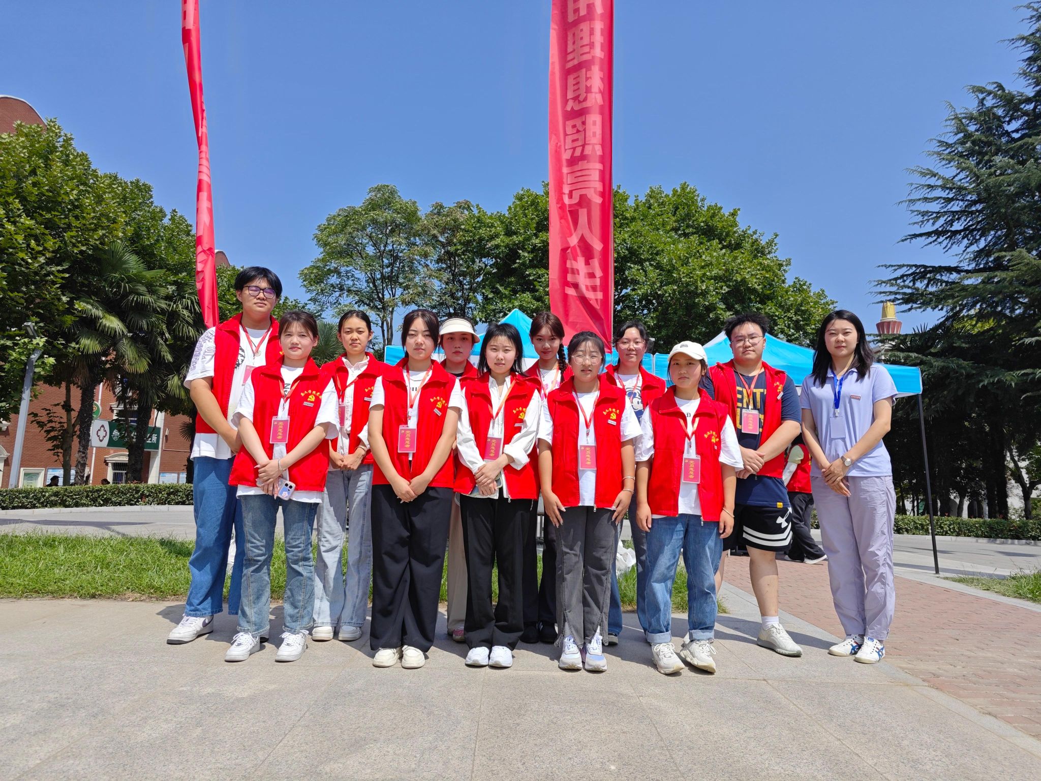 16名入党积极分子在贾佳静老师带领下,分成三组有序开展迎新答疑、行李装卸、引领新生及家长前往西区的工作,定时换岗,积极交流,相互帮助,展现西译风貌。