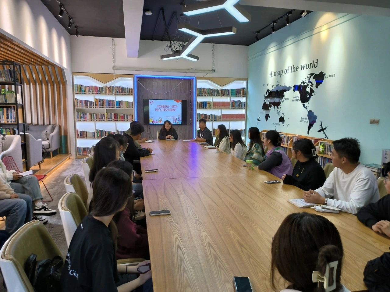 新学期开学之际,为扎实开展好民族团结进步宣传月活动,铸牢中华民族共同体意识,促进各民族交往交流交融,英文学院党委于2023年9月21日,于创客空间召开“民族团结一家亲,同心共筑中国梦”少数民族学生座谈会。