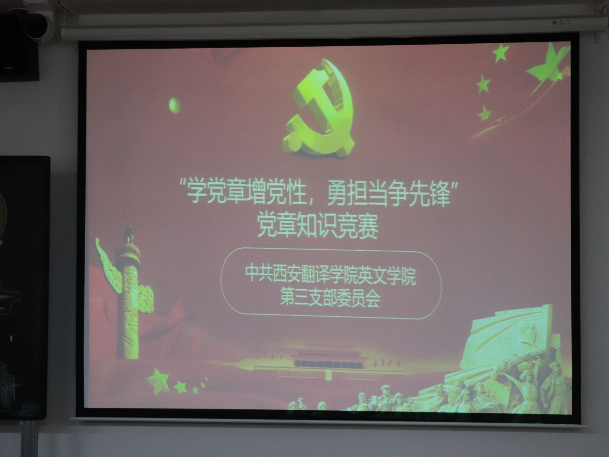 为了提升团员对党章知识的了解和进一步培育优秀党员,英文学院第三党支部于2023年11月28日晚上七点于4430M举行“学党章增党性,勇担当争锋”党章知识能力大赛。