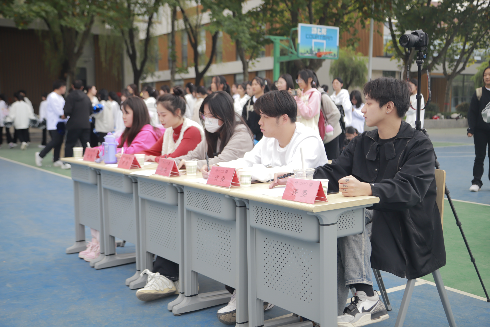莅临本次比赛的嘉宾和评委有:2020级英文学院学生分会主席团成员、第一届校啦啦操一等奖指导教练孙瑞,全国啦啦操三级教练宋晓宇,英文学院团总支办公室主任刘殷翔,青年志愿者协会分会秘书长王荔丹,英文学院新媒体中心主任胡奕冰。