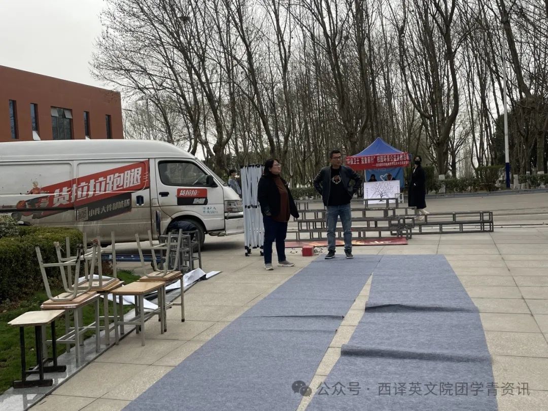 为了我院外语类专业招聘会顺利进行,英文学院各团学组织招募数名志愿者为会场进行布置。