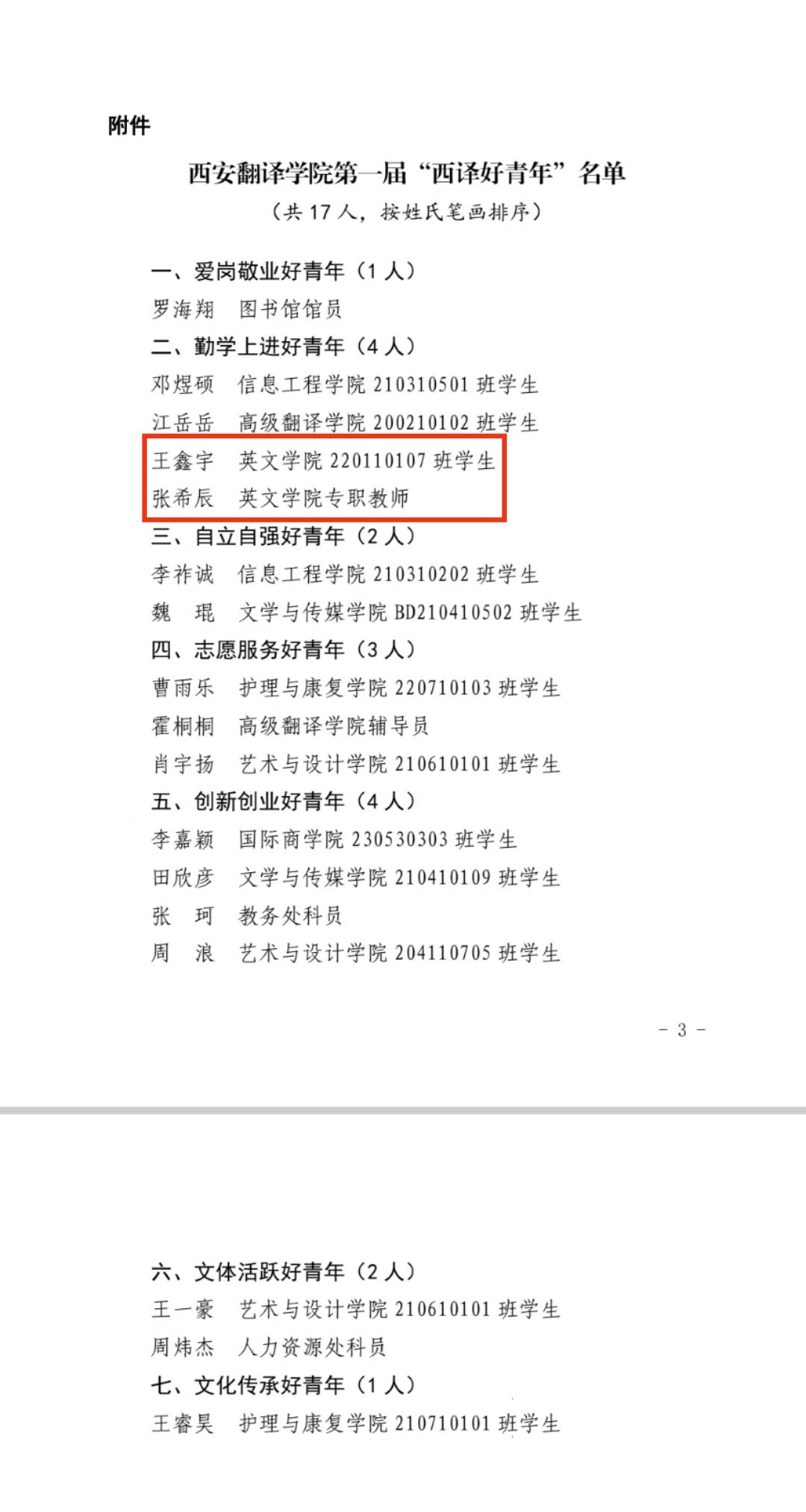 经个人申报、基层团组织评议遴选、校团委资格审查,团委委员会审议,本次共有17名青年学生进入答辩环节,经过现场展示、评审质询两个环节,拟授予17名同学"西译好青年"荣誉称号。其中英文学院师生共两名成功入选“勤学上进好青年”。