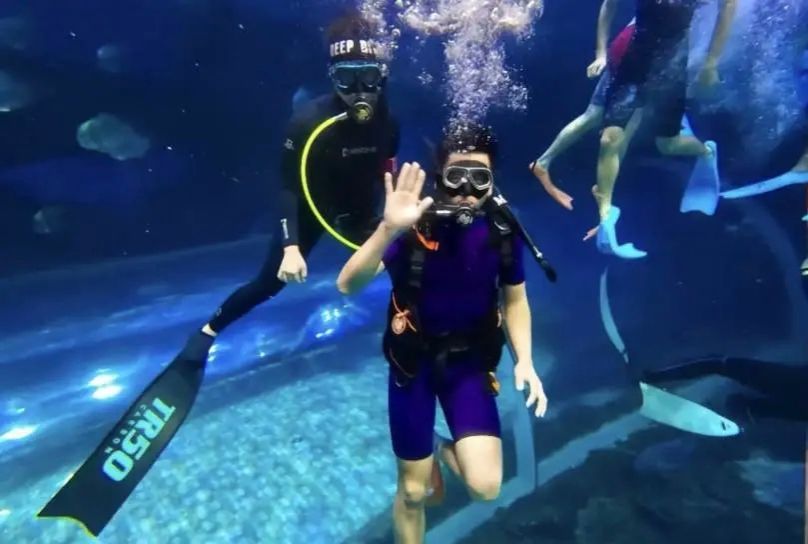 下潜时,学生与澄澈水域温柔相拥,聆听水波轻语,沉浸式探索水下秘境;上升时,从神秘水下缓缓回归现实,沉浸式体验带来别样奇妙感受。潜水运动兼具探险刺激感、休闲惬意感与健身实用性,既能帮助学生塑造优雅体态、锤炼健康体魄,更能让学生熟练掌握水中生存技能,进一步拓宽运动视野。