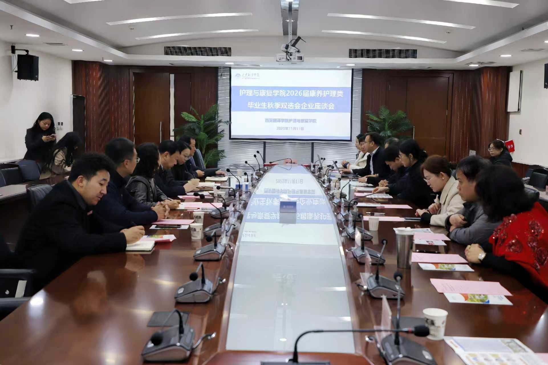 为深入贯彻落实国家关于促进高校毕业生就业的决策部署,搭建用人单位与毕业生高效、精准的双向选择平台,促进大学生就业行动落地见效,2025年11月11日,西安翻译学院成功举办了2026届康养护理类毕业生秋季校企座谈会暨双选会。活动由曲江新区高校就业驿站、西安翻译学院大学生就业创业指导服务中心、护理与康复学院联合主办,曲江新区党群工作部指导。