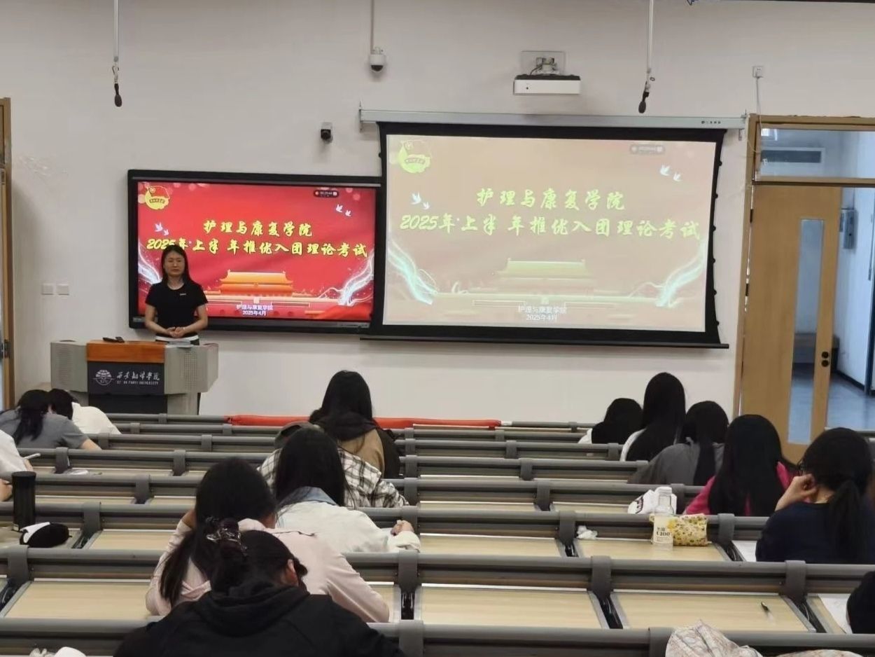 为进一步筛选和培养思想觉悟高、政治素质过硬的优秀青年,为团组织注入新鲜血液。 4月16日,护理与康复学院于10T22成功举办2025上半年推优入团理论考试。此次考试由团总支记赵晓晓监考。