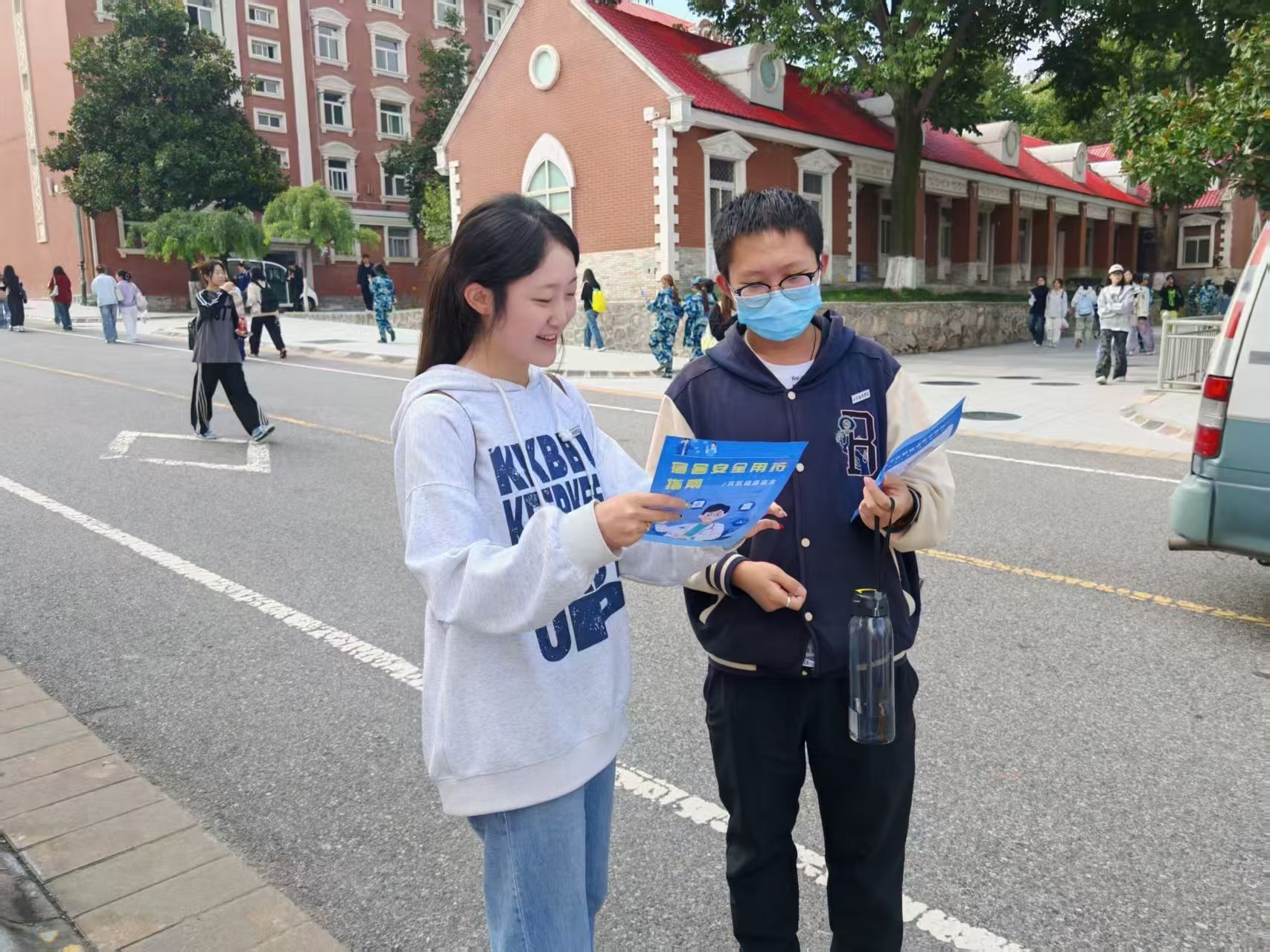 活动中,志愿者们不拦截学生通行,预留1.5米宽通道;备用创可贴等应急药品防范小意外。流动宣传的脚步与定点讲解的声音,让安全用药的知识入脑入心,更让健康生活的理念在宿舍楼宇间、校园交流中悄然传递,“关注自身与他人健康”的氛围愈发浓厚。