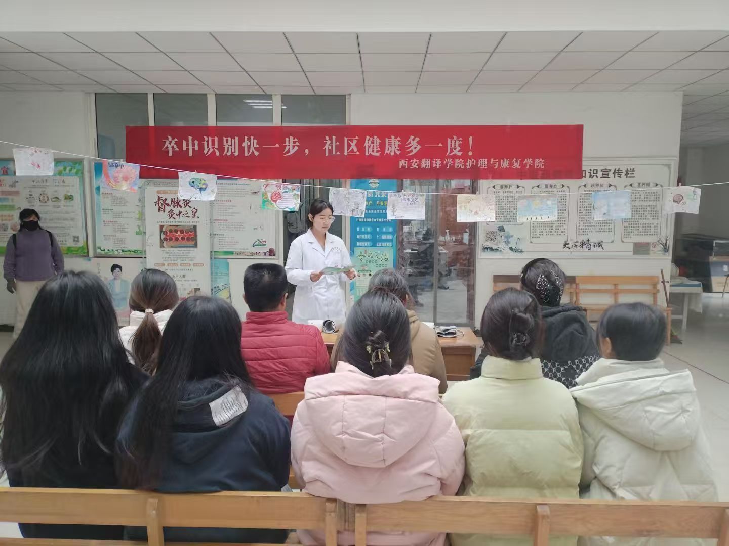 活动筹备阶段,护理与康复学院积极组织学生制作脑卒中知识手抄报,招募并培训志愿者;新一村卫生室同步准备医护指导、现场答疑等专业支持。活动当天,学生志愿者与社区工作人员提前就位,悬挂 “卒中识别快一步,社区健康多一度” 横幅,有序展示手抄报,划分血压测量区与宣讲互动区,以整洁、清晰的场地布局,迎接参与老人。