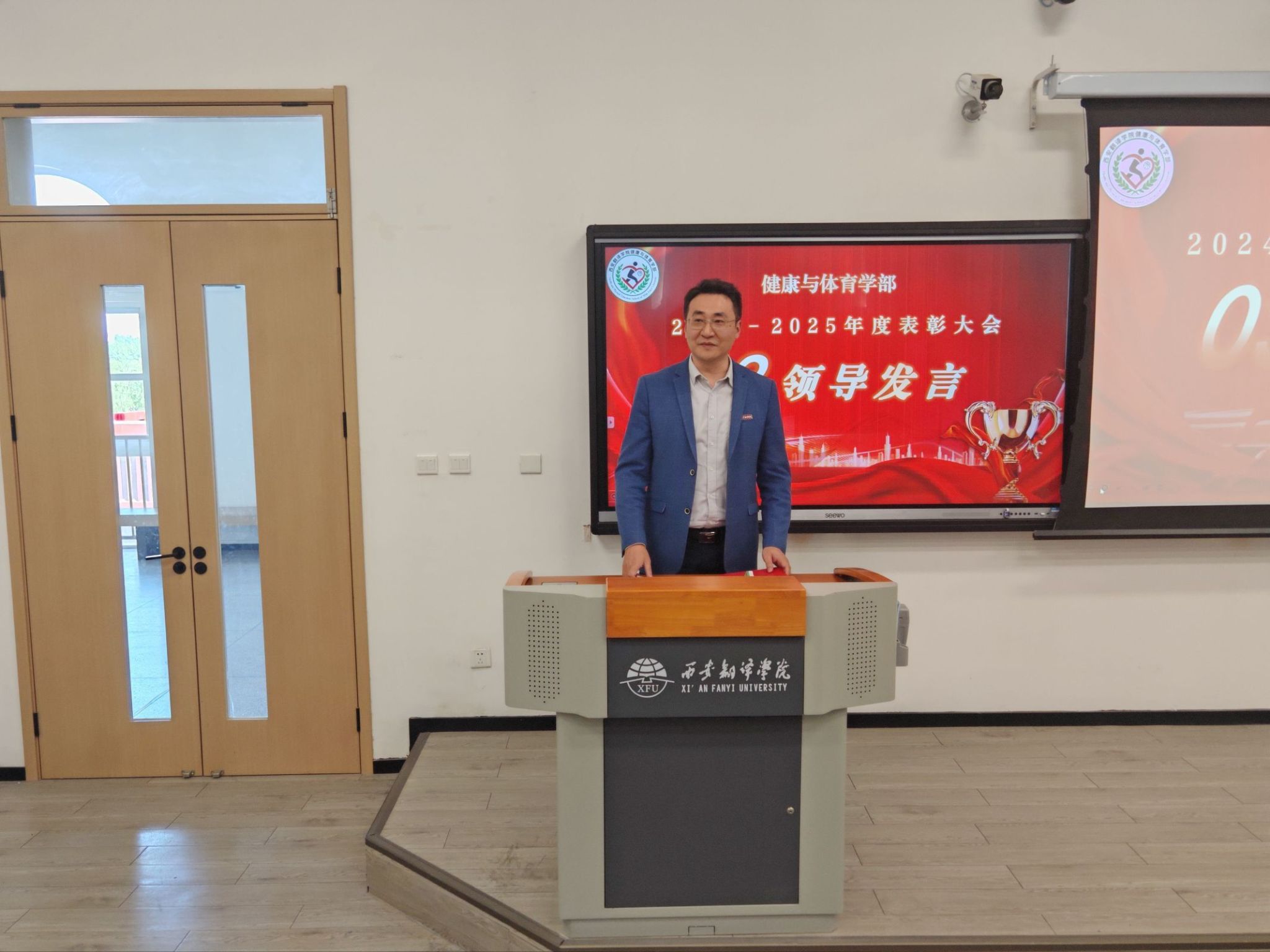 随后,赵桢宇作总结讲话。他首先向所有获奖集体和个人表示热烈祝贺,充分肯定了2024-2025学年学部在学风建设中取得的显著成效,他指出,学风是学部发展的根基,是人才培养质量的重要保障,结合健康与体育学部的专业特点,学风建设更要突出“医体融合”的学部特色,既要锤炼学子们过硬的专业技能,也要培育他们勤学善思、求真务实的治学态度。他希望受表彰的集体和个人珍惜荣誉、再接再厉,充分发挥榜样示范引领作用;希望全体学子以榜样为镜、以实干为帆,将体育精神转化为学习动力,勤学笃行、奋勇争先;也希望全体教职工凝心聚力、协同发力,持续深化教育教学改革,完善学风建设长效机制,做好学生成长路上的引路人,助力学子们在大学生活中全面发展,共同努力营造具有学部特色的优良学风氛围。