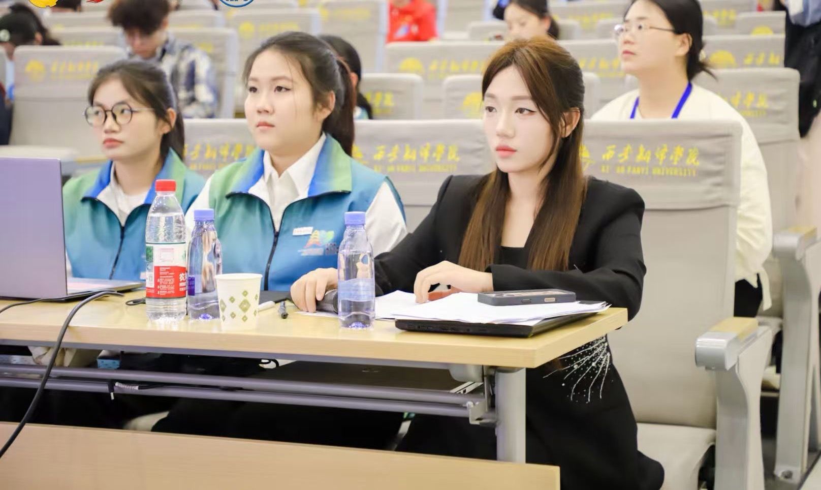 赛事举办期间,志愿者团队分工协作,坚守服务前沿。签到引导组以热忱服务完成队伍签到与入场指引,确保现场秩序;现场服务组维护评审现场秩序、传递物资,保障答辩规范;计时控场组精准把控路演时间,保障赛事公平;机动组随时待命,响应突发需求。全体志愿者高效协同、主动作为,以专业与暖心服务保障赛事各环节高效推进。