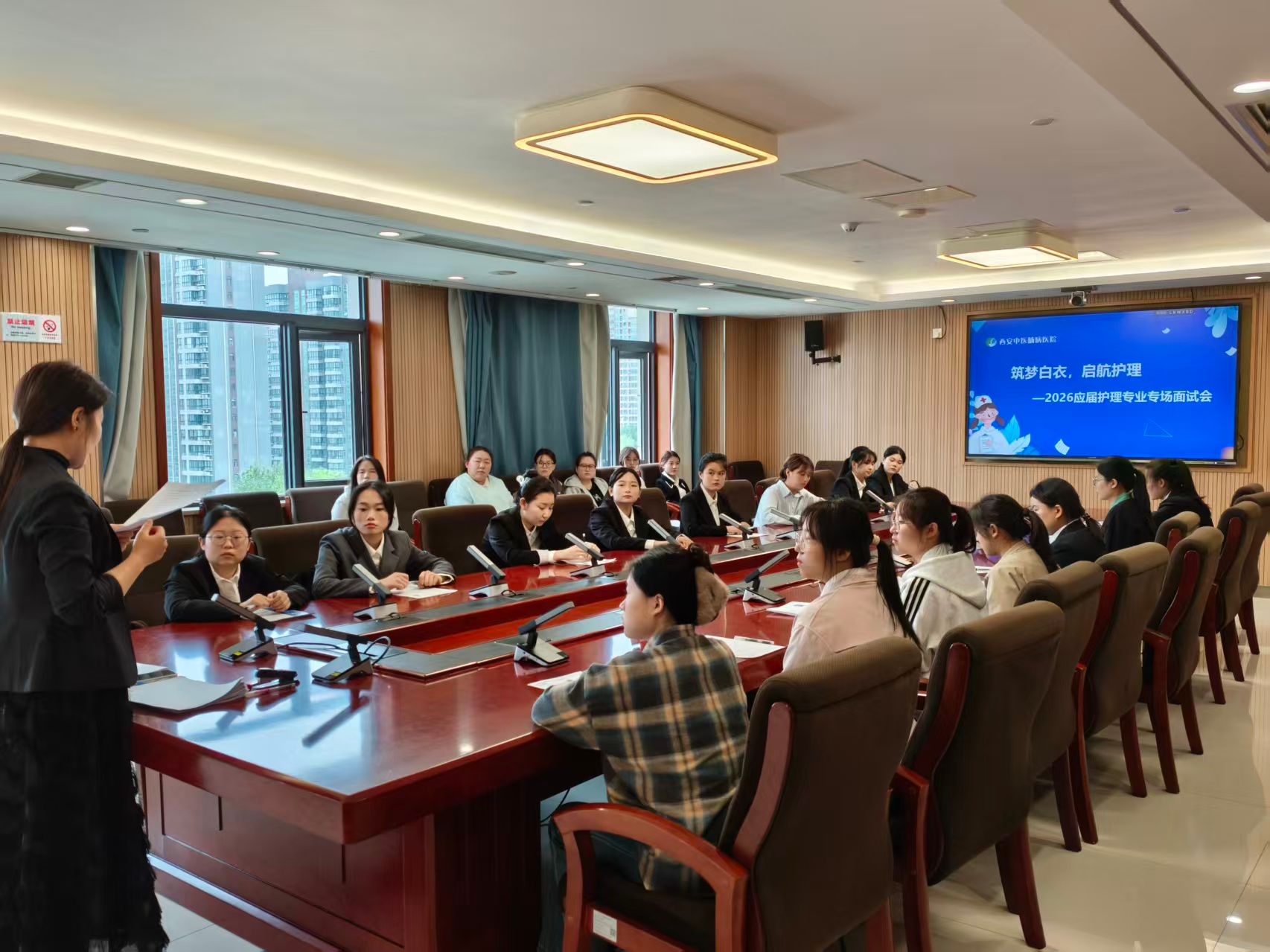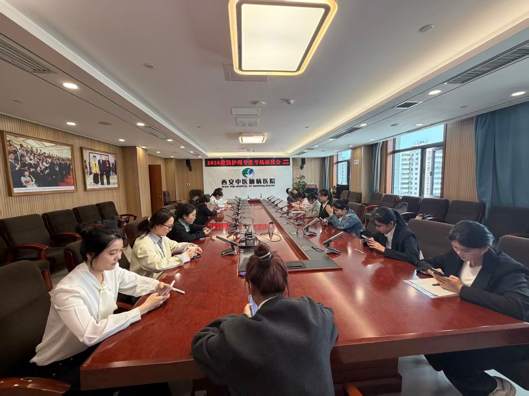 为扎实推进毕业生就业工作,精准搭建校企人才对接平台,助力护理学专业学子实现高质量就业,4月22日,健康与体育学部组织2026届护理学专业毕业生前往西安中医脑病医院参加专场招聘会,开启职场求职新征程。本次招聘会由健康与体育学部综合办科员范彩露与辅导员赵晓晓两位老师带队,2026届护理学本科毕业生积极参与,现场与医院招聘负责人展开深入交流。